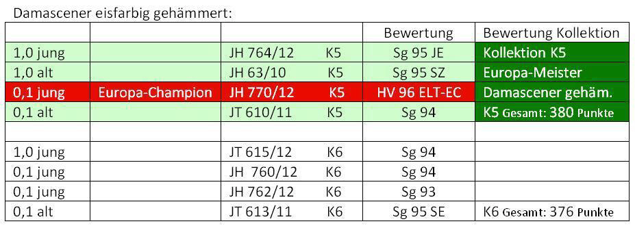Außerdem wurde ich in beiden Farbenschlägen jeweils mit 1 Kollektion EUROPAMEISTER.