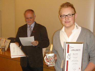 Für meine Leistungen und Erfolge wurde ich auch dieses Jahr vom Landkreis Roth geehrt. 2-facher Deutscher Jugendmeister 2-facher Europameister Jugend 2-facher Europachampion Jugend Landrat Herbert Eckstein überreichte mir eine Ehren-Urkunde und einen toll gestalteten Keramik-Teller. Lest hierzu auch den Zeitungsartikel aus der RHV >hier< . |