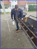 Hierfür wurden im Vereinsheim ein paar Käfige aufgebaut und Michi erklärte anschaulich an den mitgebrachten Hühnern und Tauben die Vorbereitungen für das Ausstellen der Tiere zu einer Geflügelschau - Danke Michi