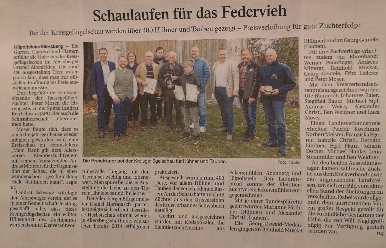 und auf der Geflügel-Kreisschau in Allersberg wurden dann noch unsere