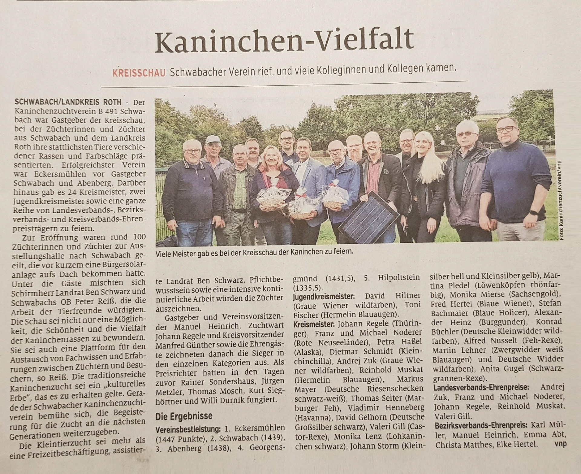 auf der Kaninchen-Kreisschau in Schwabach Vereinskreismeister 2023