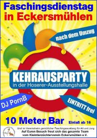 Unser Kleintierzüchterverein veranstaltete für alle Jugendlichen ab 16 Jahren eine Faschingskehraus-Party mit DJ PornB in der Ausstellungshalle an der Raiffeisenstraße 8 in Eckersmühlen. 10 Meter Bar und beste Stimmung waren wieder mal garantiert!