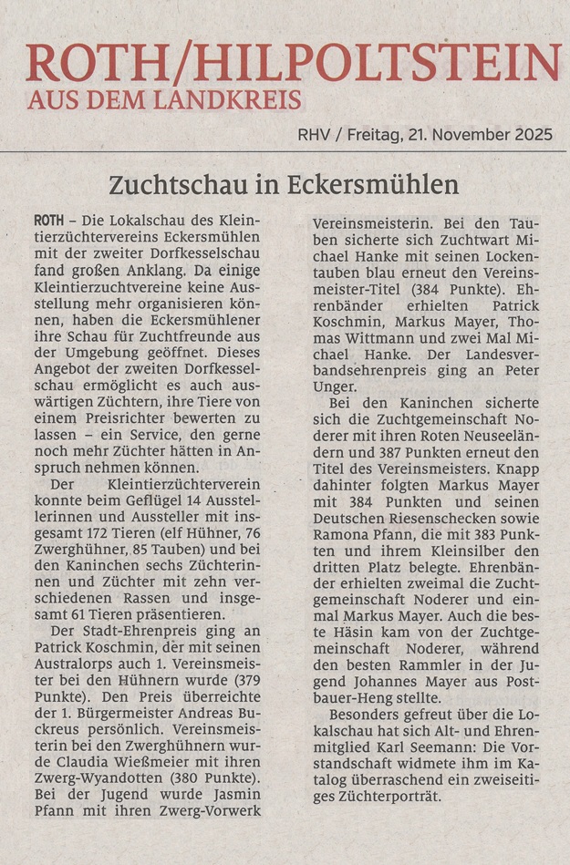 unseres Kleintierzüchterverein Eckersmühlen e.V. wurde dieses Jahr