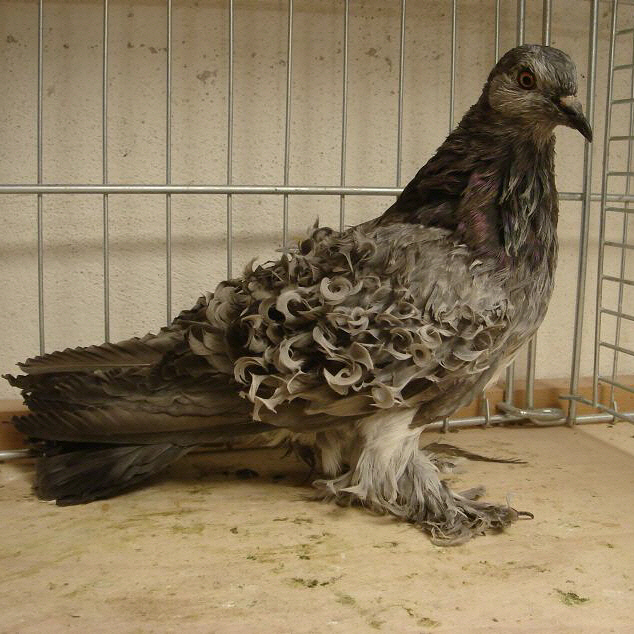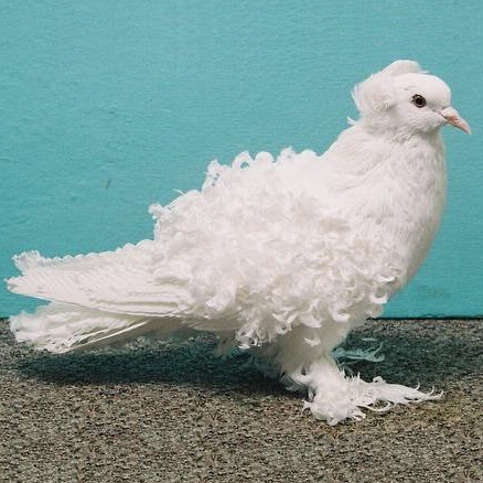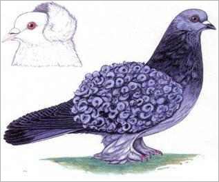 Gleicht in Gestalt einer kräftigen, breitbrüstigen, mittelhoch gestellten Feldtaube. Das Gefieder ist etwas locker. Hauptmerkmal sind die gelockten Federn des Flügelschildes.