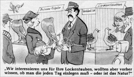 | Läufe: | Mittellang, bestrümpft, die Farbenschläge mit Rundhaube mittellange, dichte, zur Seite abgedrehte Fußbefiederung. |